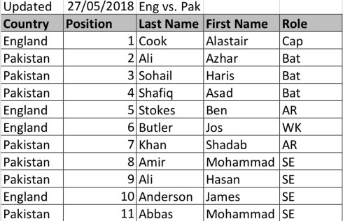 Based on this my test XI would be as follows