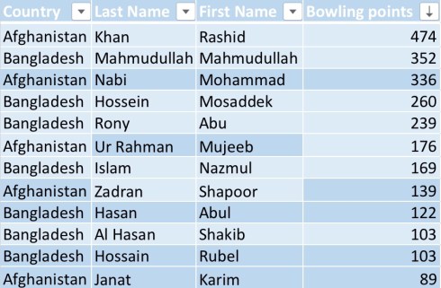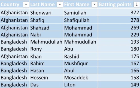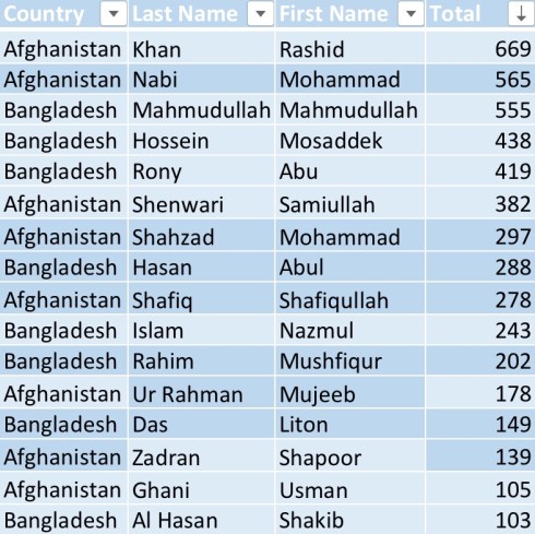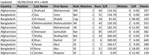 One big difference is that the above index takes into consideration all T20 matches. Below is the Playing XI. There is one change between that has taken place since the last match. I have dropped Karim Janat and brought in Abu Rony. I mentioned yesterday that the team will be context flux. At some point I will have a minimum number of games that a person should play. The main reason is the results become more accurate once a person plays two games or more.