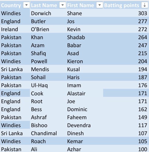 The obvious question is why are some of the top players missing from the playing XI. The answer is simple. Competition or lack of it. The highest competition is for the middle order and he lowest is for the opening batsmen. The fast bowlers have generally been picking themselves. I have decided that I will be going in with four specialist bowlers. I am disinterested in the combinations of the specialists as long as I can get at least four quicks and one spinner in the team. Another decision I have taken is that injured players will be eligible to appear in the Test XI. I generally will give the top 20 names. If you would like to know where a particular cricket ranks then mention it in the comments and I will provide it to you. This is of course provided that they have played a game.