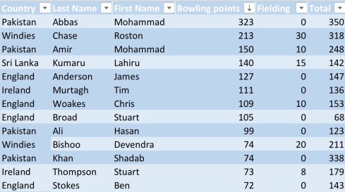The Windies vs. Sri Lanka test match is how a test match is supposed to be. Good fast bowling, dogged determination and the spinners coming to play on the last day. The margin of victory means that West Indies jumps to second place and Sri Lanka to last. The consolation for Sri Lanka is England were below them after their first test match. Four matches have been played so far and this is how it looks.