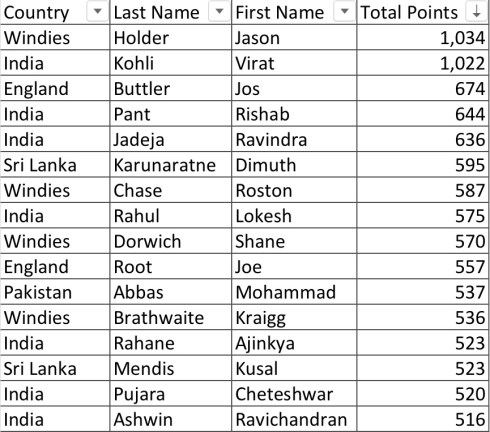The all roundskills of Jason Holder clearly have put him ahead of the pack. Rishab Pant is the rising star of the list. I expect Ben Stokes and Sam Curran to break into this list after the first test of the winter tour.